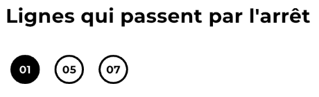Dans la section "Lignes qui passent par l'arrêt", les boutons "numéros de ligne" n'ont pas de role pertinent