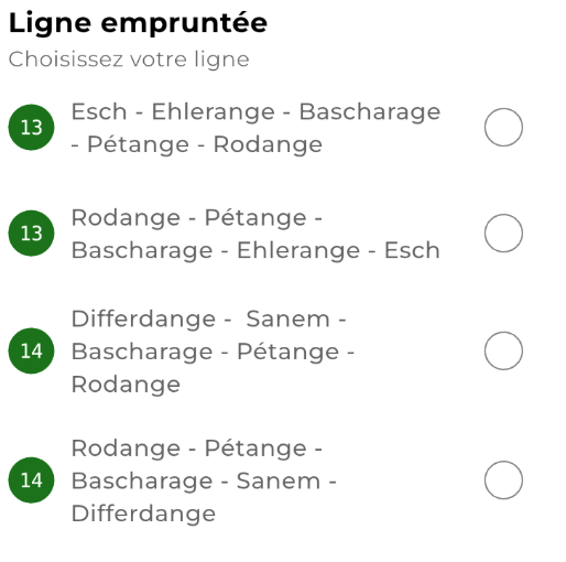 Lors de l'ajout aux favoris, les éléments de sélection dans la section "Ligne empruntée" n'ont pas de nom accessible restitué par les technologies d'assistance.