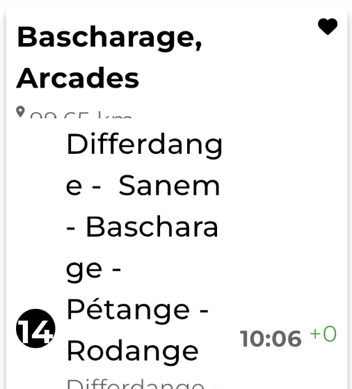 Dans la section "Mes favoris", les indications de distance sont illisibles.